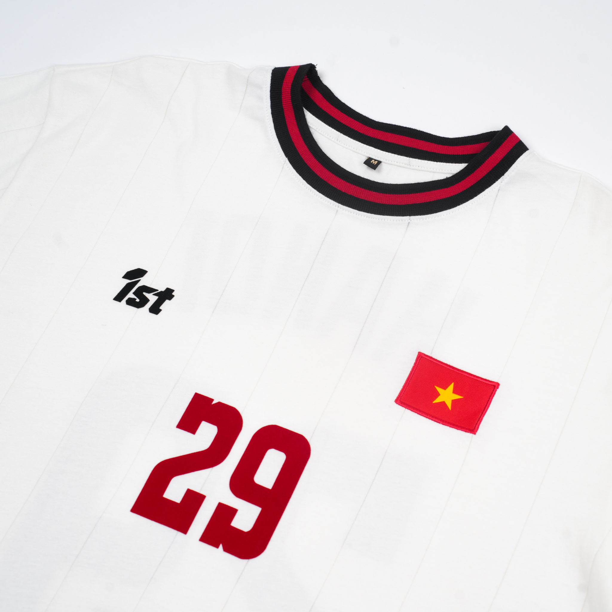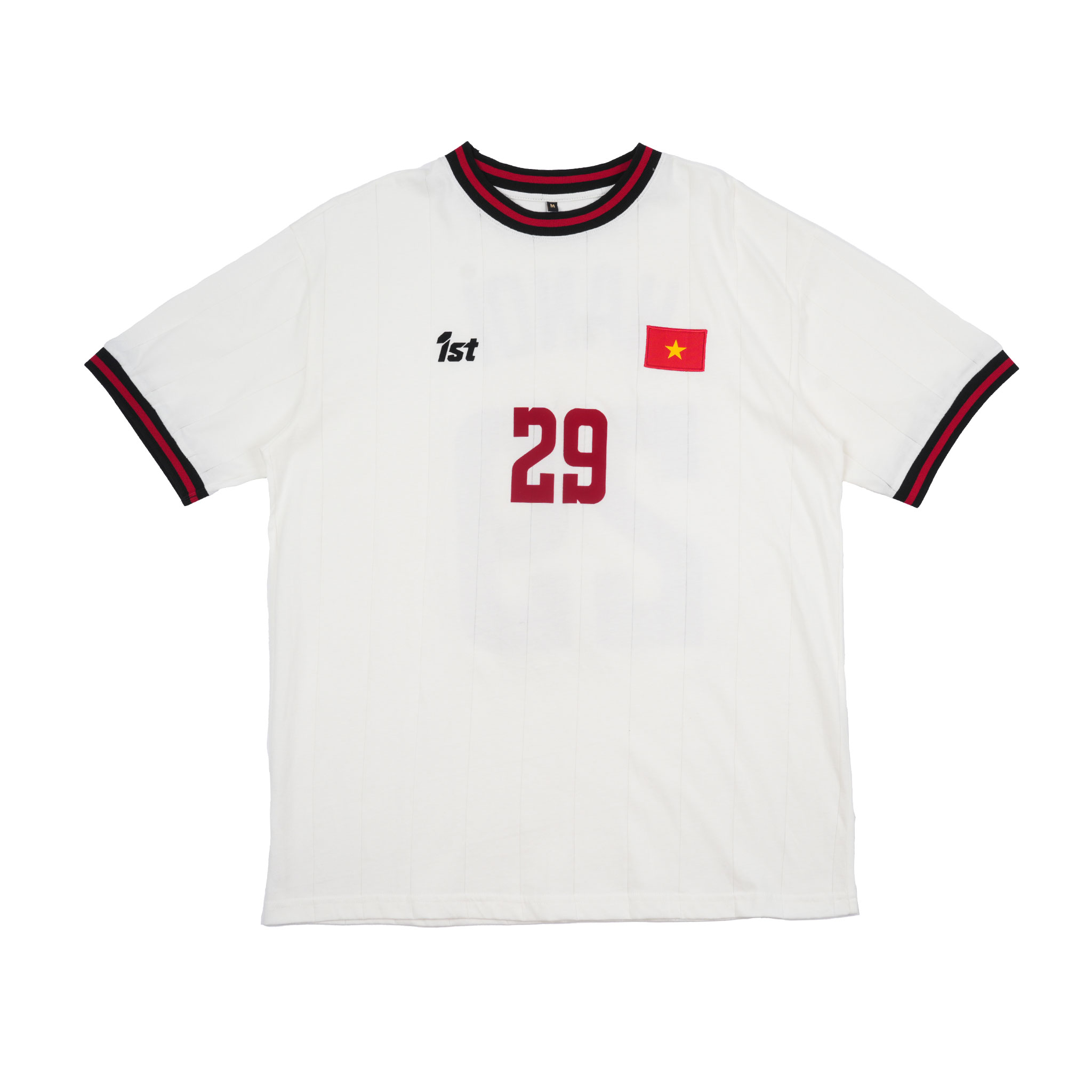 Show your pride with the 1st Jersey Vietnam Flag Short Sleeves - HANOI 29 by 1st Football Store. Made from 100% cotton for breathable comfort, this unisex jersey features flock print details for a premium textured look. Designed with an oversized fit, available in bold red or classic white, it’s perfect for football fans, streetwear lovers, and casual daily outfits.