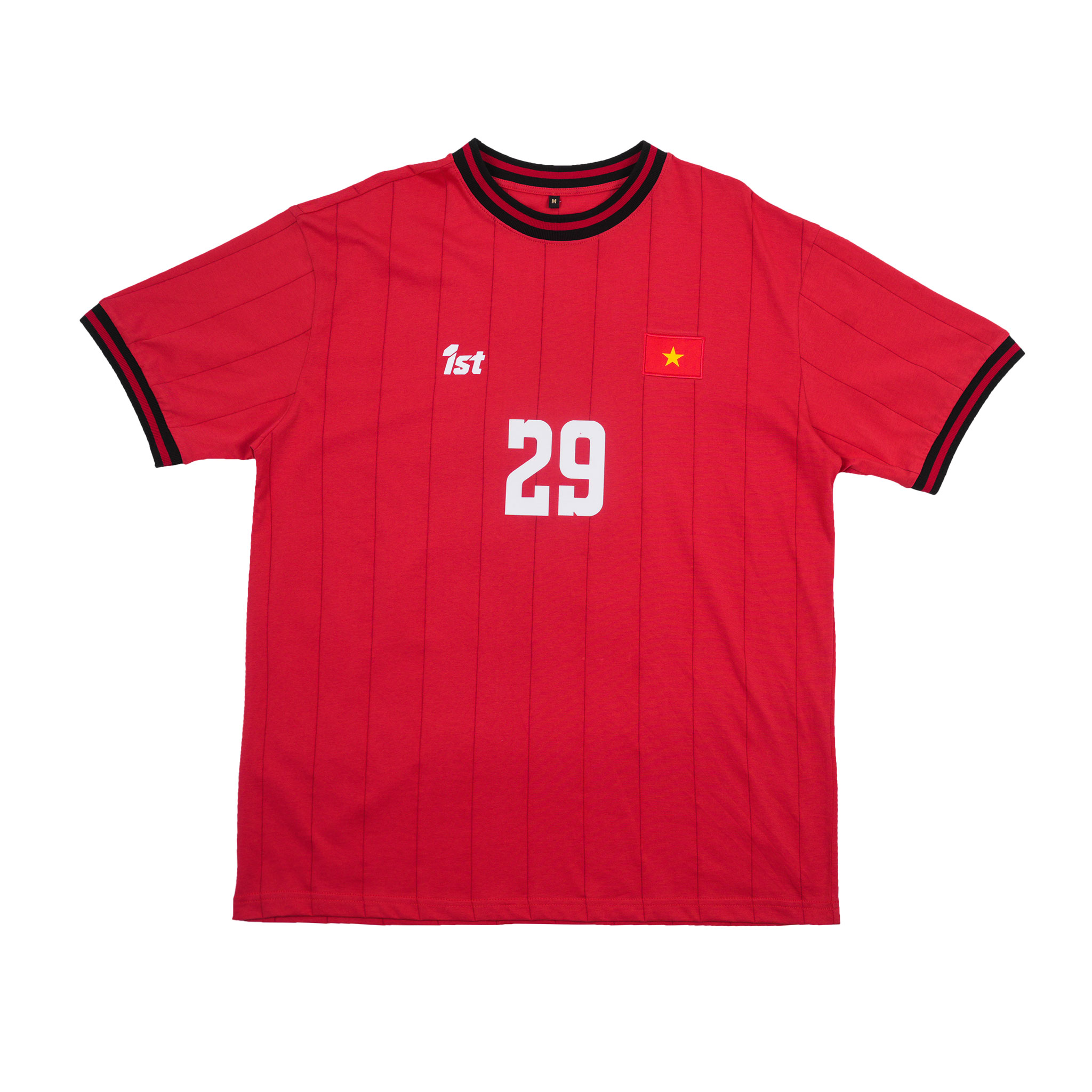 Show your pride with the 1st Jersey Vietnam Flag Short Sleeves - HANOI 29 by 1st Football Store. Made from 100% cotton for breathable comfort, this unisex jersey features flock print details for a premium textured look. Designed with an oversized fit, available in bold red or classic white, it’s perfect for football fans, streetwear lovers, and casual daily outfits.