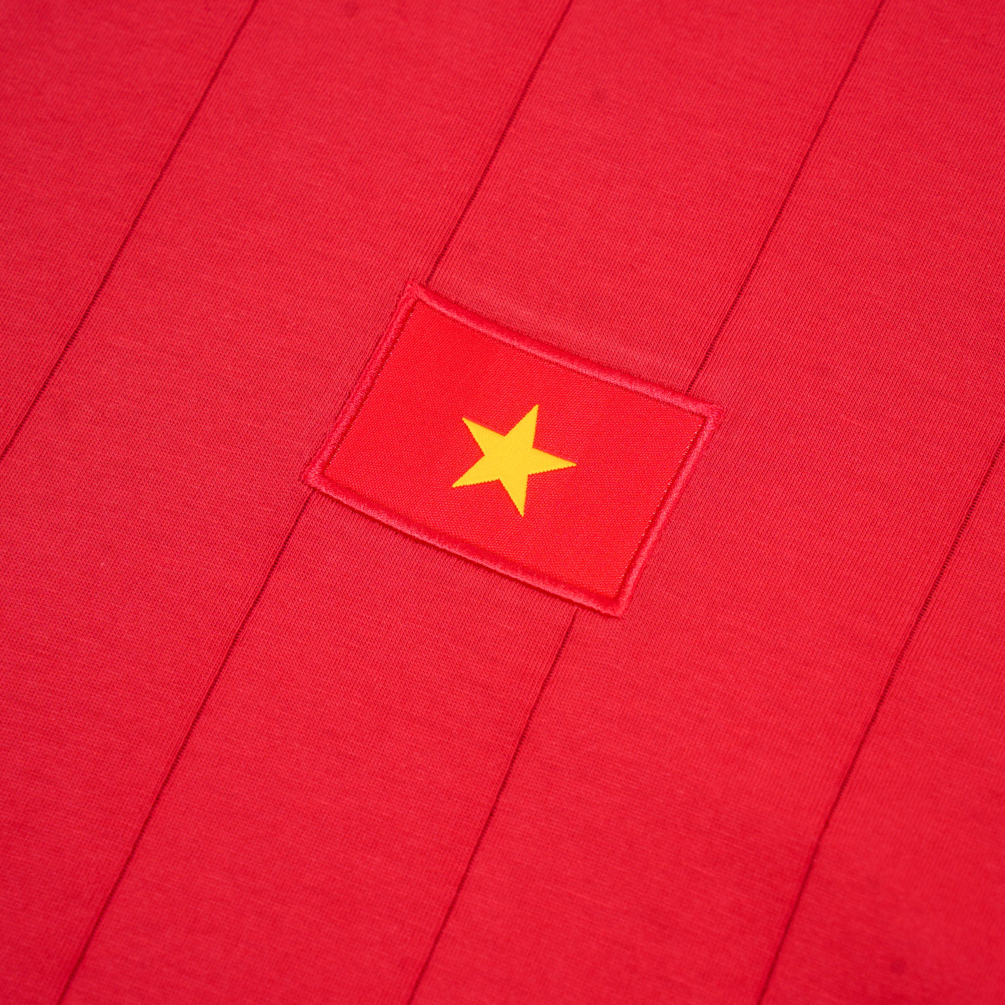 1st Jersey Vietnam Flag Short Sleeves - HANOI 29 in 100% cotton with flock print details. Unisex design, oversized fit, available in red and white – ideal for fans and casual wear.