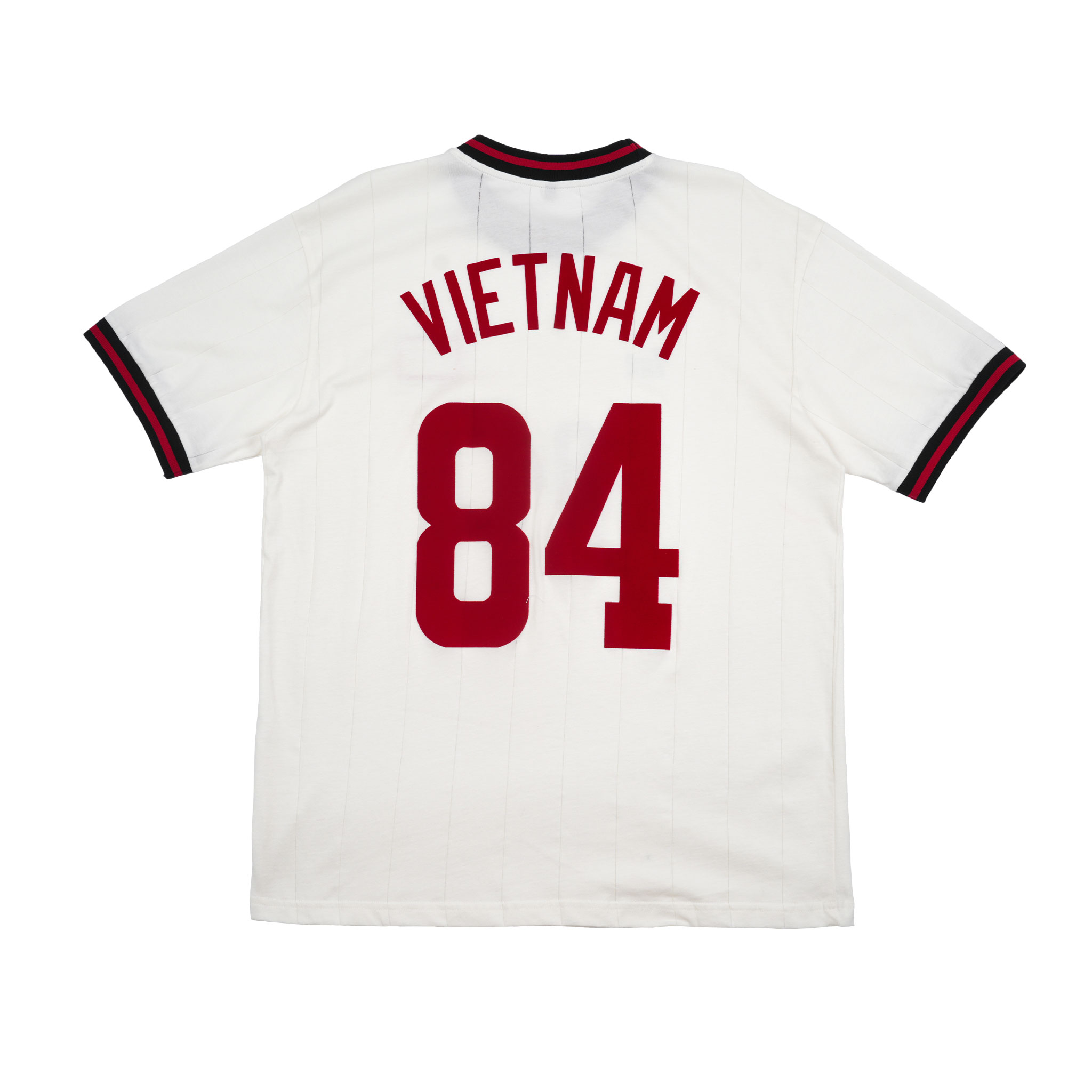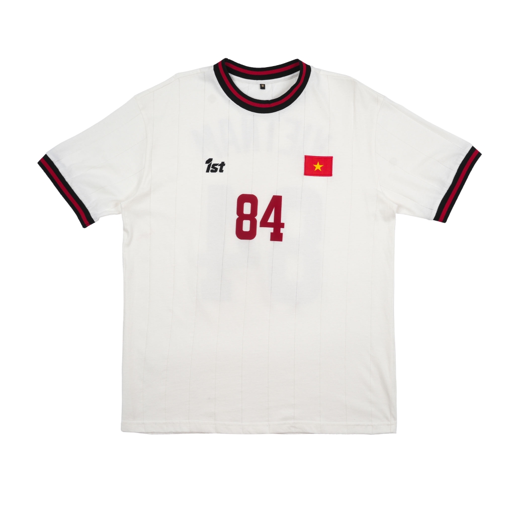 1st Jersey Vietnam Flag Short Sleeves - VIETNAM 84 in 100% cotton with flock print details. Unisex design, oversized fit, available in red and white – ideal for fans and casual wear.