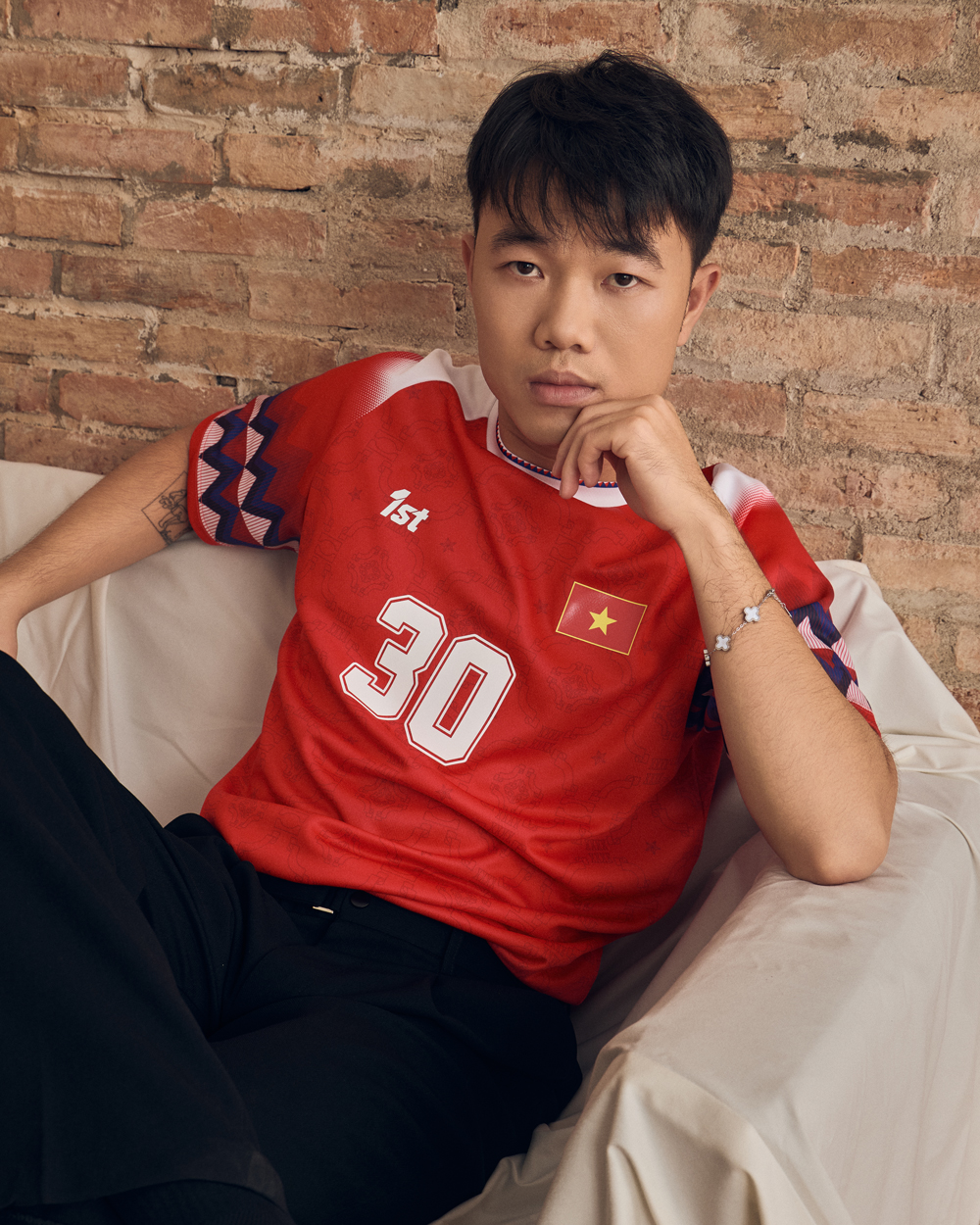 Details of the tournament are printed on the back collar as a nostalgic reminder, while traditional Vietnamese encaustic tile patterns run throughout the jersey, honoring the nation's cultural identity – rustic yet refined.